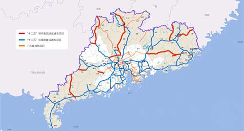 根據(jù)《廣東省綜合交通運輸體系“十二五”規(guī)劃》,將加快國家高速公路粵境段、高速公路出省通道和珠江口東西兩岸跨江通道建設,構建布局合理、通達便利和具有較高服務水平的高速公路網(wǎng)絡。省委、省政府確立高速公路建設2大目標:“十二五”期間,全省將實現(xiàn)縣縣通高速公路,全省高速公路通車里程達6500公里。